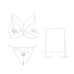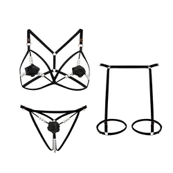 MZ3854L Luxury Lingerie Sexy Women Eyelash Embroidery Transparent Garter Erotic Lingerie Femme Sets
