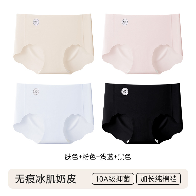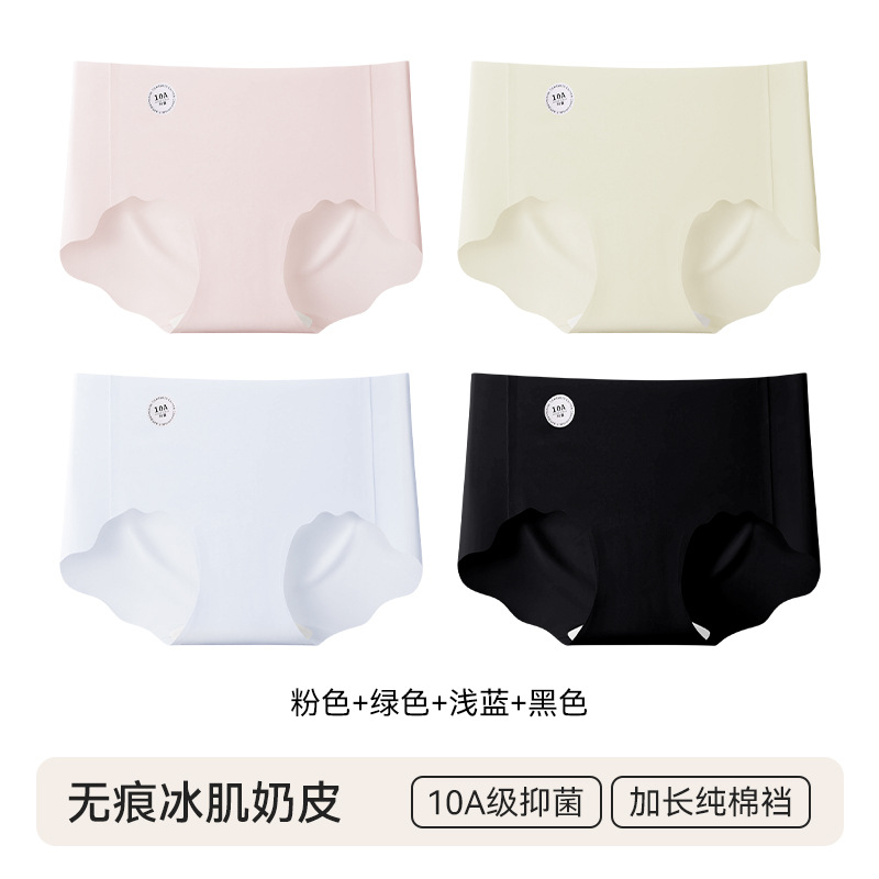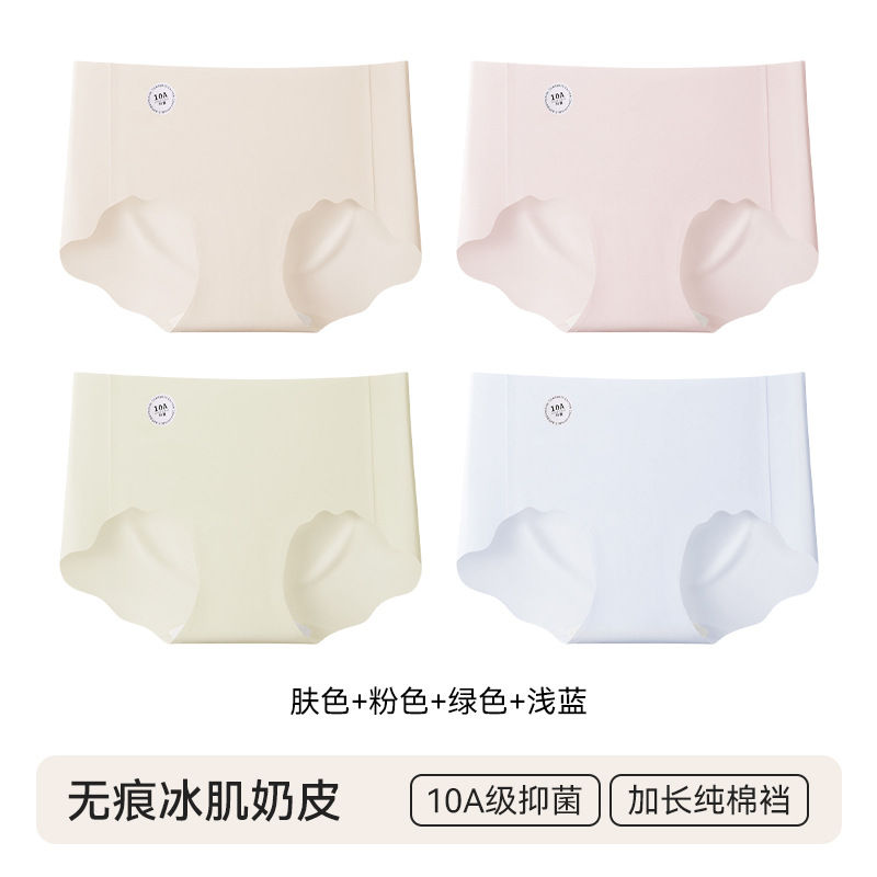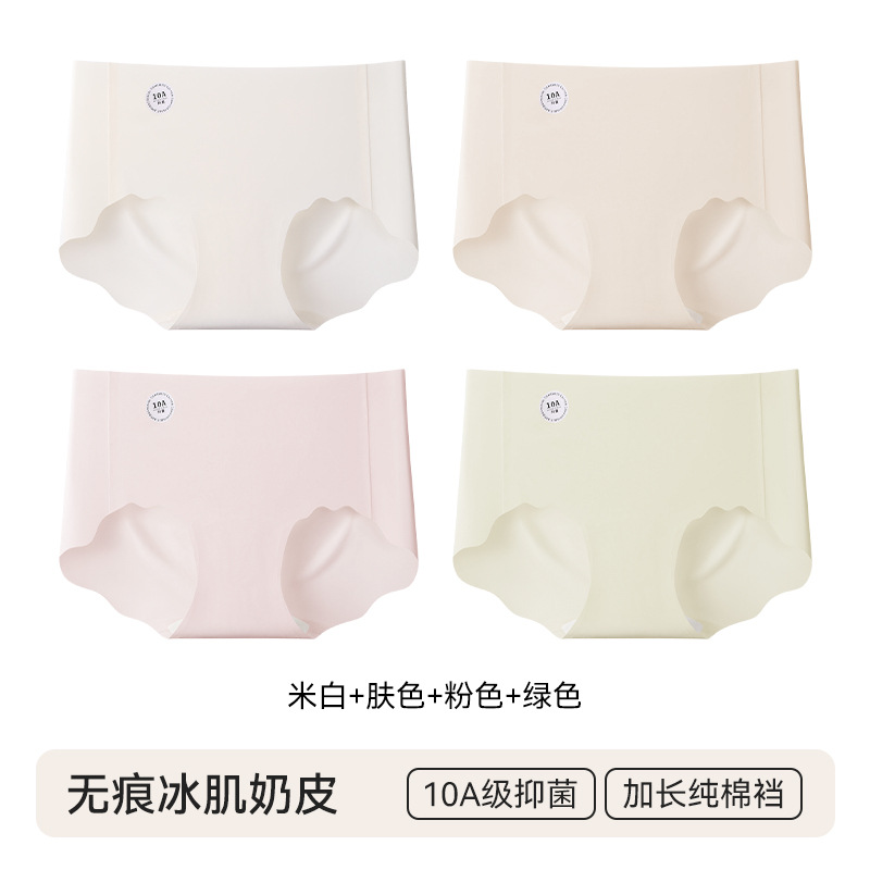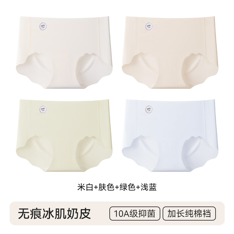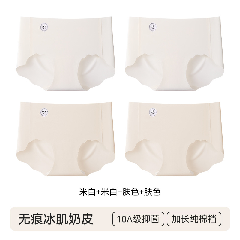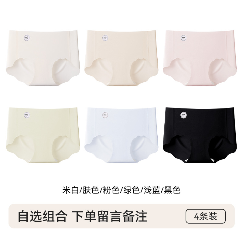 4 pairs of specially formulated liquid foundation underwear for women, summer invisible seamless sports yoga 10A antibacterial mid-waist women's briefsbreath